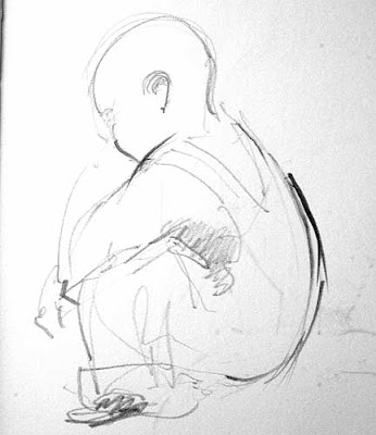 The reason why blind contour drawing is essential for drawing ‘moving targets’ is that you often have less than three or four seconds to get it down before the subject has moved on. You simply don’t have the time to cross-reference the marks made against the subject.