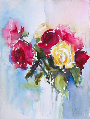 ‘Tea Roses – Chateau de Beduer’ 2008 Watercolour. 28 x 38cm (15 x 11 inches). © The Artist. The above painting was a demonstration piece ‘how to paint flowers loosely’ done for the benefit of students on my Watercolour Painting Holidays. Even if you just simply experience for the first time the act of painting…