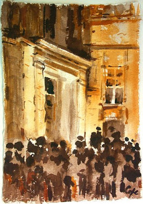 I did some drawings whilst exhibiting in ‘La Maison de la Boêtie’, opposite the Cathedral Saint Sardos of Sarlat. Some where done in 2006 as well. Here’s some drawings of the architecture of the Romanesque cathedral (thirteenth century) with it’s patron saint St.Sardos: