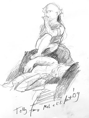 pencil drawing of a child sitting on top her mother…. kids on top? a domestic scene indeed…