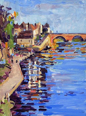 La Rivière Dordogne à Bergerac – painting of a bridge over a river